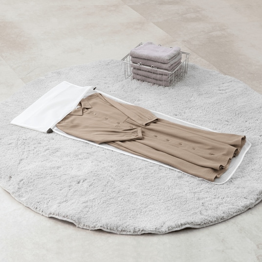 ニットワンピースやマフラーをクッションポールに巻いて洗うことで、洗濯物を固定し、洗濯機の衝撃から守り型崩れを防ぐ洗濯ネットです。細かい網目のメッシュ生地が洗濯物から出る糸クズの侵入をおさえ、ネット内の洗濯物を守ります。
