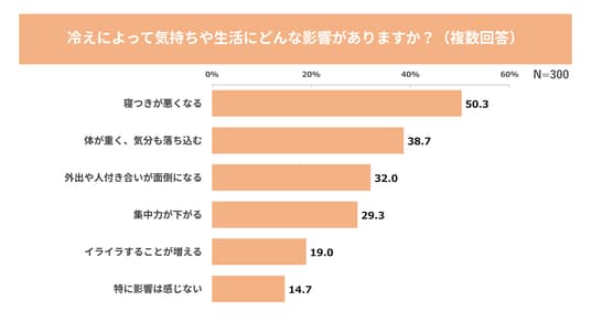 寒さや冷えが原因で睡眠の質に影響を与え、日常生活に支障をきたしていることが明らかとなりました。