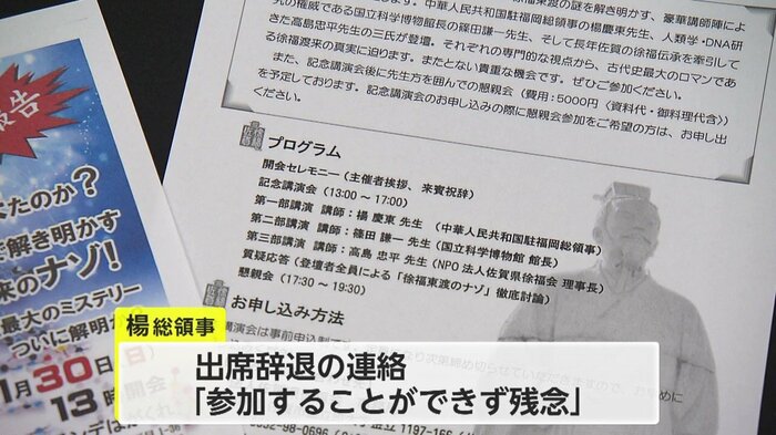 開館30周年を記念した11月30日のイベントには中国の駐福岡総領事・楊慶東氏が講演する予定だったが、辞退するとの連絡が入った。その際、「参加することができず残念」とのメッセージが添えられていたという。