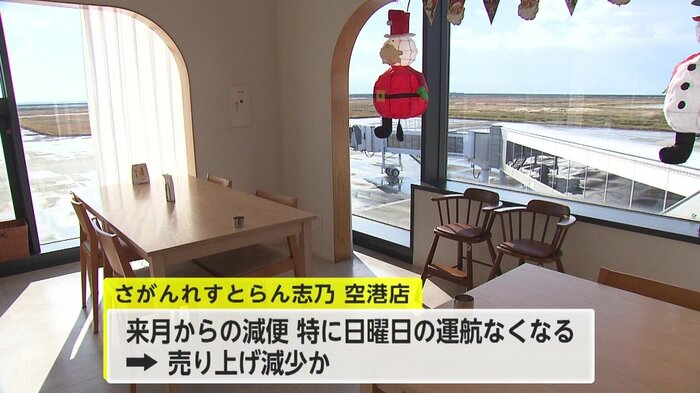 中国語のメニューを準備するなど様々な客層に対応している「さがんれすとらん志乃 空港店」の担当者は「(上海便の減便は)正直、痛い。売り上げは下がると思う」と不安を口にする。