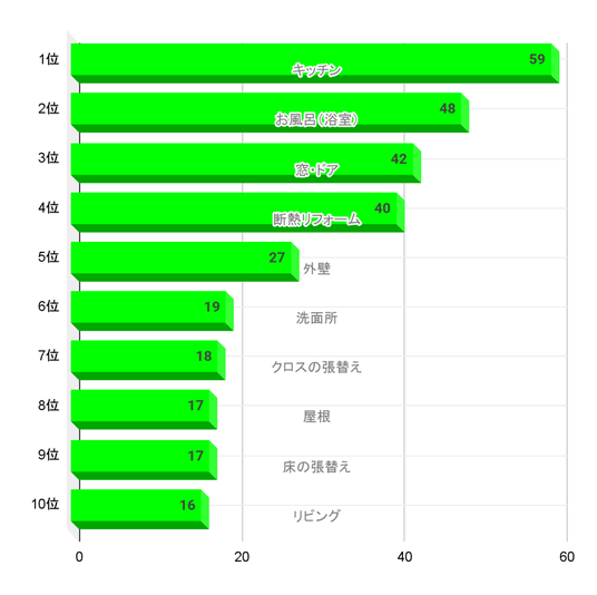 その結果、これまで「水まわり」が中心だった人気領域に、 “窓・断熱”が本格的に並び始める転換点 が見えてきました。