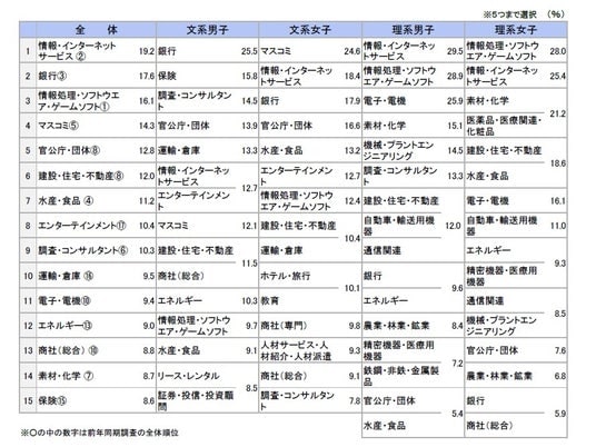 ○1位「インターネットサービス」、2位「銀行」、3位「情報処理・ソフトウエア」