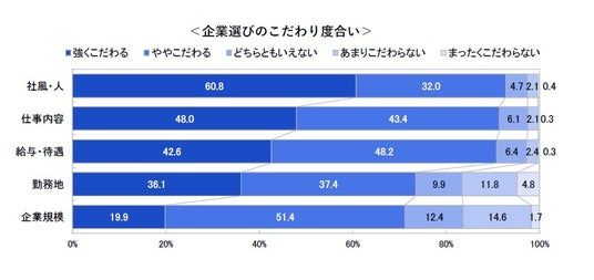 ○「社風・人」「仕事内容」「給与・待遇」にこだわる学生が9 割を超える