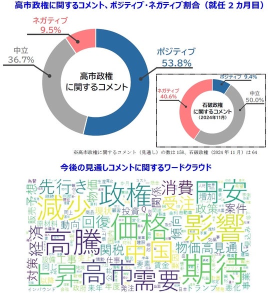 - 企業からは、就任2カ月目の高市政権の政策に対して期待する声が幅広く寄せられ、ポジティブな意見が5割を超えた