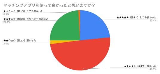 マッチングアプリ全般の満足度を調査したところ、72.9%が星4つ以上の肯定的な評価をしています。