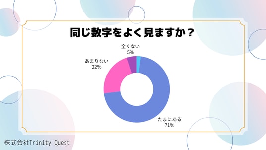 調査の結果、71%が「同じ数字をよく見ることがある」と回答し、また印象に残っている数字として “777”“444”“1111” などのいわゆるエンジェルナンバーが上位を占めました。