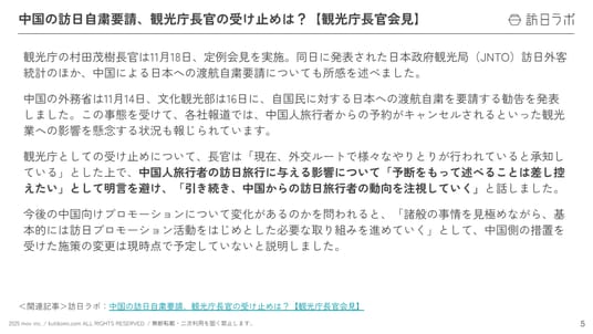 - 中国の訪日自粛要請、観光庁長官の受け止めは?【観光庁長官会見】