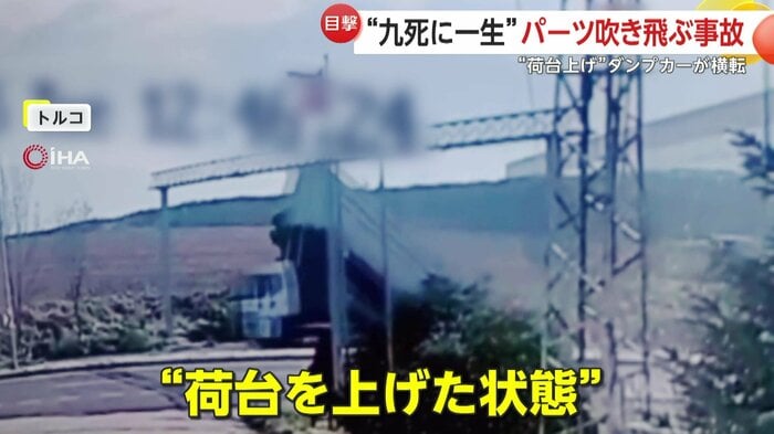 トルコで、走行中の車が対向車線に飛び出しトラックに突っ込む瞬間がカメラに捉えられた。車は大破したが、命に別条はなかったという。別の場所では荷台を上げたままのダンプカーが柱に衝突し、横転する事故も発生している。