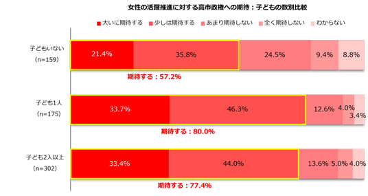 4.女性の活躍推進に対する高市政権への期待:子どもの数別比較