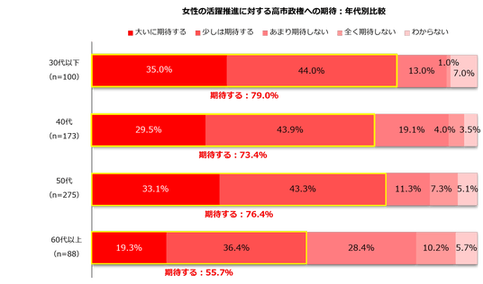2.女性の活躍推進に対する高市政権への期待:年代別比較