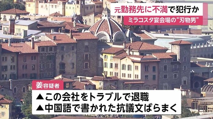 姜容疑者はこの会社を何らかのトラブルが原因で辞めていて、男性に刃物を向ける前、中国語で書かれた抗議文をばら撒いていたという。