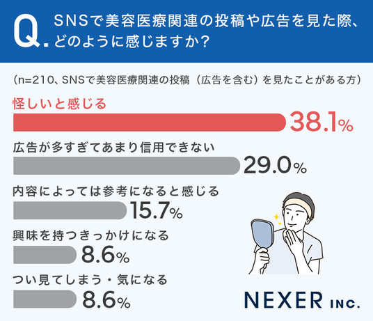 38.1%がSNSの美容医療関連の投稿について「怪しいと感じる」と回答しました。