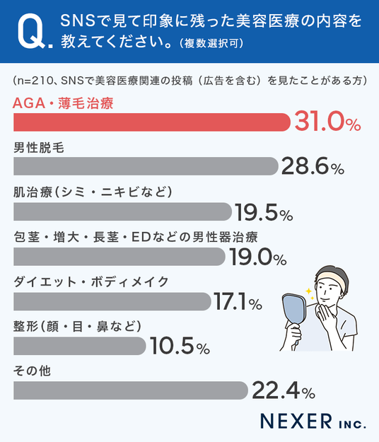 AGAや脱毛は、見た目の変化が明確でビフォーアフターの効果を実感しやすい分、SNS上でも関心を集めやすいテーマといえます。