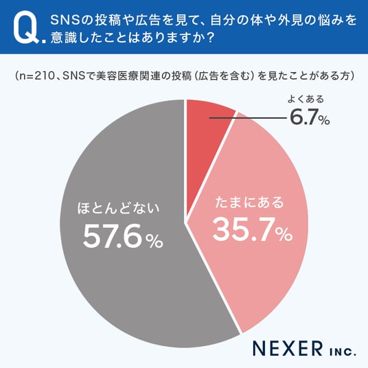 あわせて、SNSで表示される美容医療の投稿や広告を見て、自分の体や外見の悩みを意識したことがあるか調査しました。