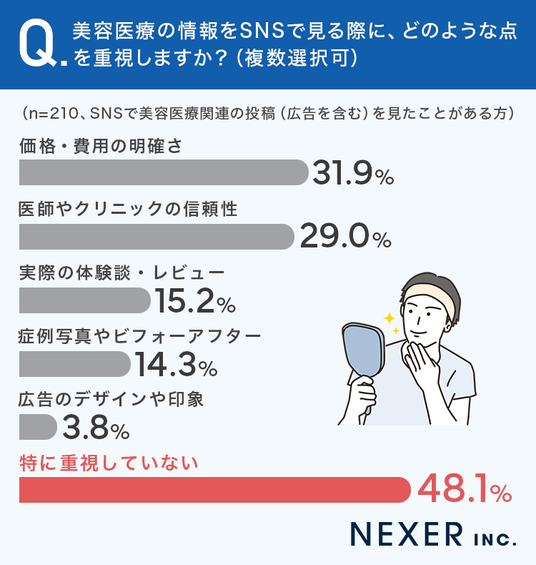 最後に、SNSで美容医療の情報を見る際に何を重視するかを聞いてみました。
