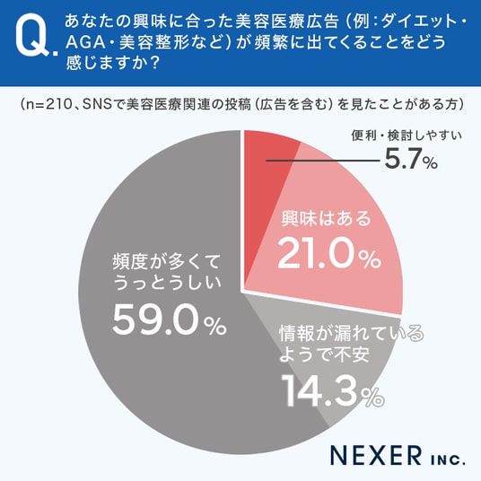 続いて、興味に合った美容医療広告が頻繁に出る場合どう思うかを聞いてみました。