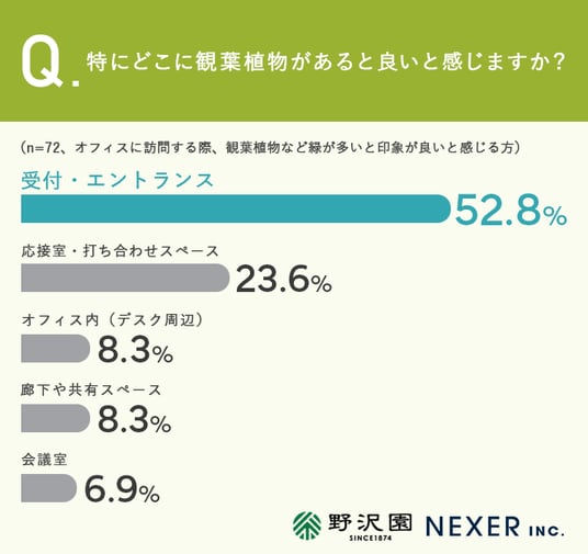 ■52.8%が、観葉植物があると良いと感じる場所は「受付・エントランス」と回答