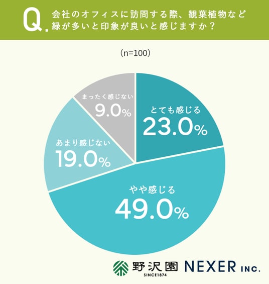 まずは営業や面接など様々な理由で会社のオフィスに訪問する際、観葉植物など緑が多いと印象が良いと感じるかを調査しました。