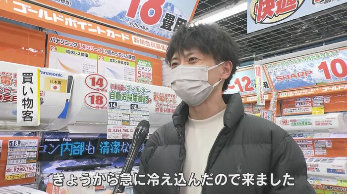 寒波の影響で、2025年1番の寒さとなったこの日。福岡市内の家電量販店では、「寒くなったから」とエアコンの買い替えに訪れていた客の姿がみられた。