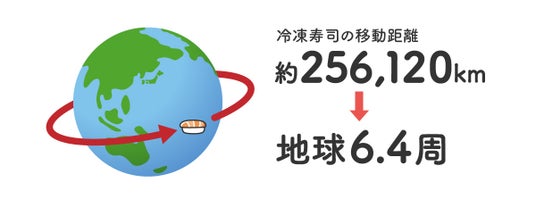 冷凍寿司が移動した距離:256,120km(地球6.4周分)