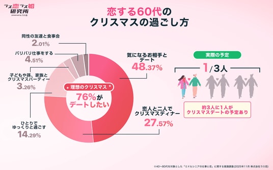 なお、2025年11月に公開済みの調査結果(※)では中高年の72.1%が恋活により出費が増加しており、クリスマスという特別な日においても、デートやディナーを通じた消費活動が期待されます。