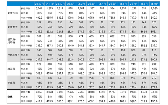 不動産ビッグデータとAI等のテクノロジーを活用し、不動産マーケティングプラットフォームを提供する株式会社マーキュリー(本社:東京都新宿区 代表取締役:陣 隆浩、証券コード5025、以下「当社」)は、独自調査による新築マンション動向を発表致します。今月は、2025年9月度分譲実績データです。