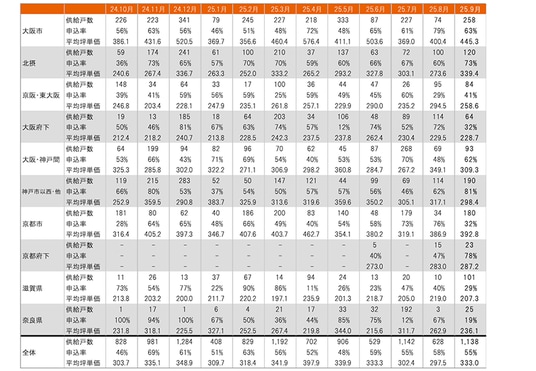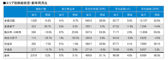集計対象エリアは首都圏及び関西で、それぞれのエリア別相場情報、需給動向、着工件数等を集計しました。