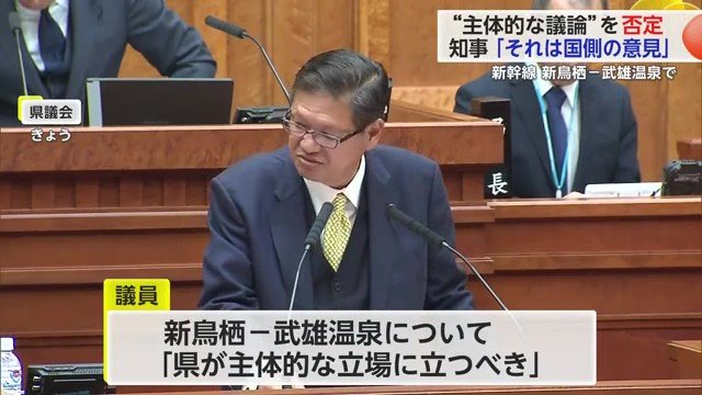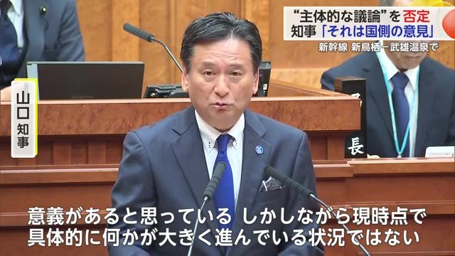 整備方針が決まっていない九州新幹線長崎ルート「新鳥栖-武雄温泉」間をめぐり佐賀県の山口知事は、「主体的に県が議論を進めるべき」との議員の指摘に対し「フル規格整備ありきの国側の意見」と強く反発した。