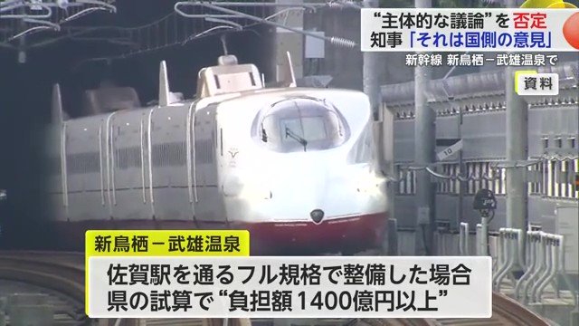 九州新幹線長崎ルート「新鳥栖-武雄温泉」間を、佐賀駅を通るフル規格で整備した場合、佐賀県の試算では負担額が1400億円以上になるとしていて、県の負担も課題のひとつとなっている。