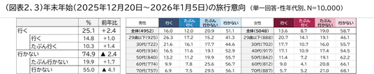 調査内容: 2025年12月20日~2026年1月5日に実施する1泊以上の旅行