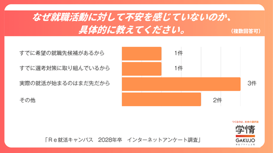 (3)就職活動に不安を感じていない学生の回答結果として最も多かったのは
