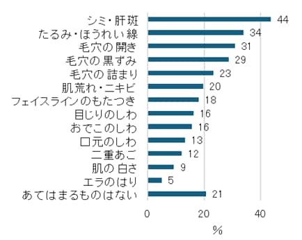 図1 顔・肌の悩み(複数回答、n=300)