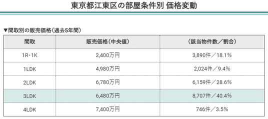 城東エリア主要3区の「間取り別価格・供給構造」から読み解く住戸ニーズの違い