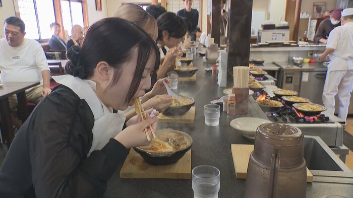 富山を代表するグルメとして知られる「糸庄のもつ煮込みうどん」の台湾進出の可能性を探るため、射水市の富山情報ビジネス専門学校の学生が台湾の高校生と共同で調査プロジェクトに取り組んでいる。