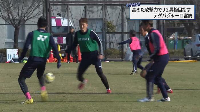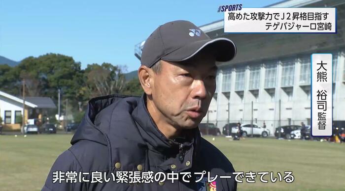 J3リーグのテゲバジャーロ宮崎がクラブ史上初となるJ2昇格プレーオフに挑む。リーグ戦4位の同クラブは、トーナメント方式で行われるこの一発勝負の初戦で、5位の鹿児島ユナイテッドFCと対戦する。九州ダービーとなる激戦を前に、選手たちは最終調整に余念がなく、大熊裕司監督とJ3得点王の橋本啓吾選手は、J2昇格への強い決意を語った。