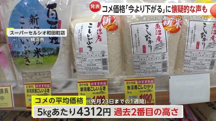 全国のスーパーで扱われた最新(11月23日までの1週間)のコメ平均価格は、4312円と過去2番目の高さのまま。