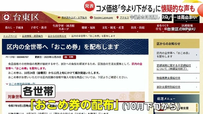 ここ台東区では、10月下旬から独自の生活支援策として、各世帯に「おこめ券の配布」が行われている。