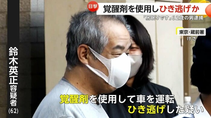 そこから降りてきたのは鈴木英正容疑者(62)だ。覚醒剤を使用して車を運転し、ひき逃げした疑いが持たれている。