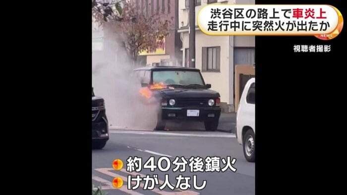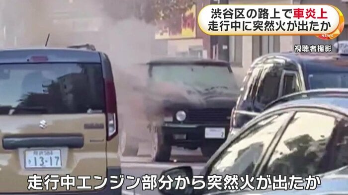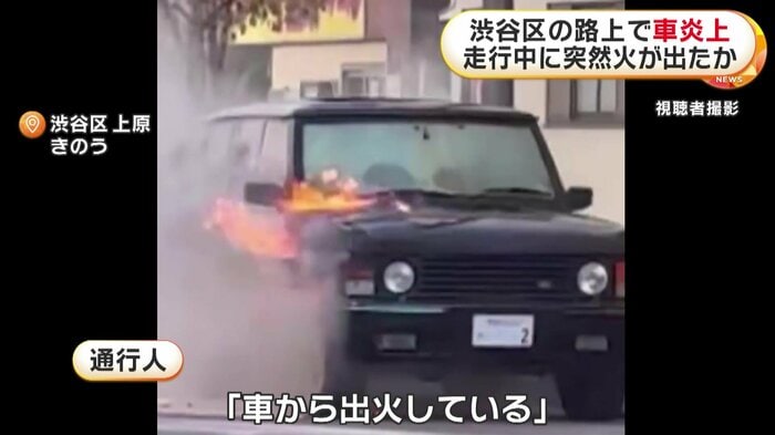 東京・渋谷区の路上で4日、車が炎上する火事があった。
