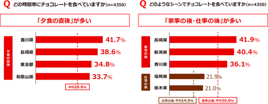 幸福度が高い地域の共通点は 「夕食後」&「労働後」チョコレートと、「夫婦間」でのチョコレートシェア