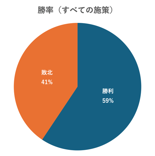 - 統計的に有意な検証数:23件(十分なサンプル数があり、結果の信頼性が高い施策数)