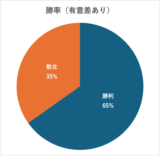 統計的に有意な改善が認められたケースでは、より高い確率(65.2%)で成果が出ており、サンプル数を確保した検証の重要性が証明されました。