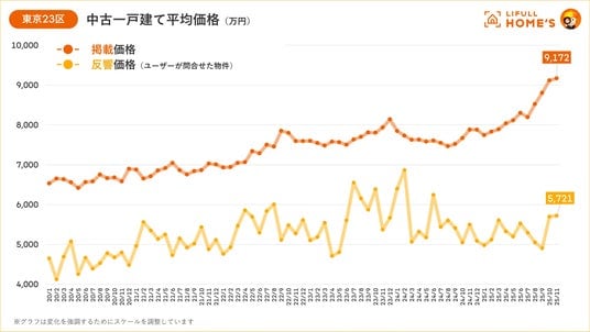 - 東京23区の掲載価格は9,172万円(前年同月比116.4%)で過去最高を更新- 東京都心6区の掲載価格は1億2,110万円(前年同月比107.8%)