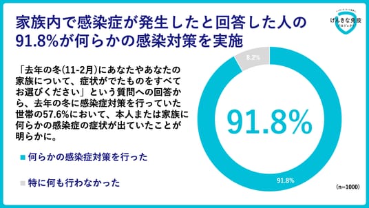 - 昨冬家族内で感染症が発生したという人の91.8%もの人が何らかの感染症対策を実施。