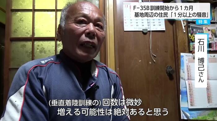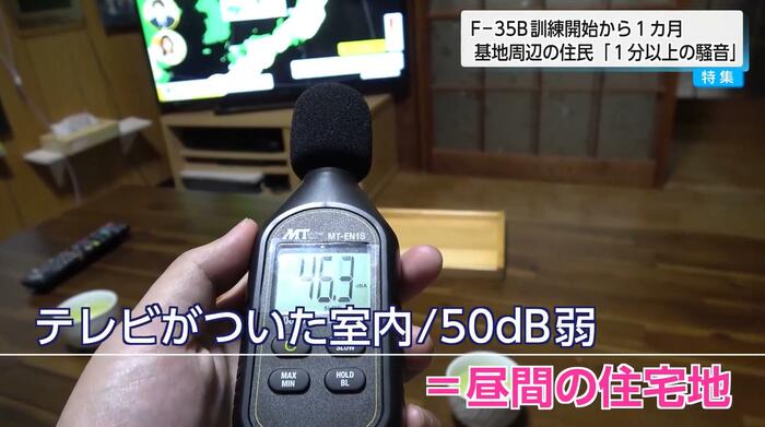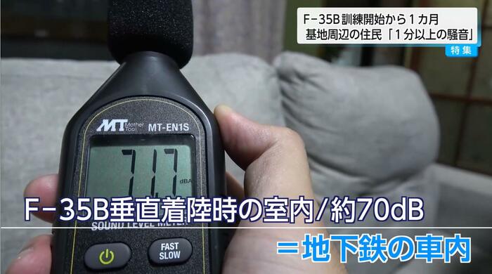 一方、F-35Bが垂直着陸している時は、70dB前後で地下鉄の車内と同程度。石川さんは、こうした騒音の中で日々を過ごしている。