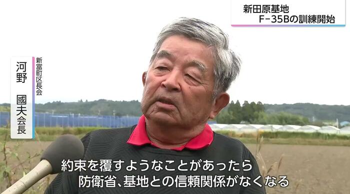 新富町区長会の河野國夫会長は、「2024年の受け入れの時からの約束を反故にした。約束を覆すようなことがあったら、防衛省、基地との信頼関係が無くなる」と訴え、防音区域の拡大など、町民への負担軽減策の充実を求めている。
