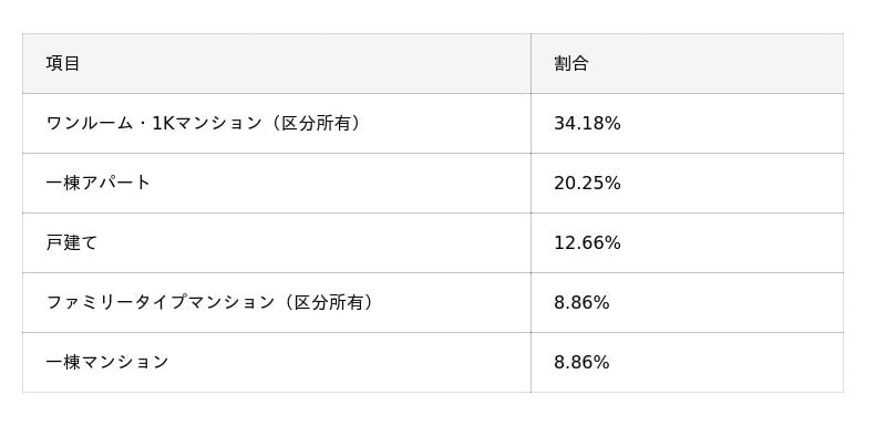 ■初めての不動産投資で投資した物件の種類を教えてください。