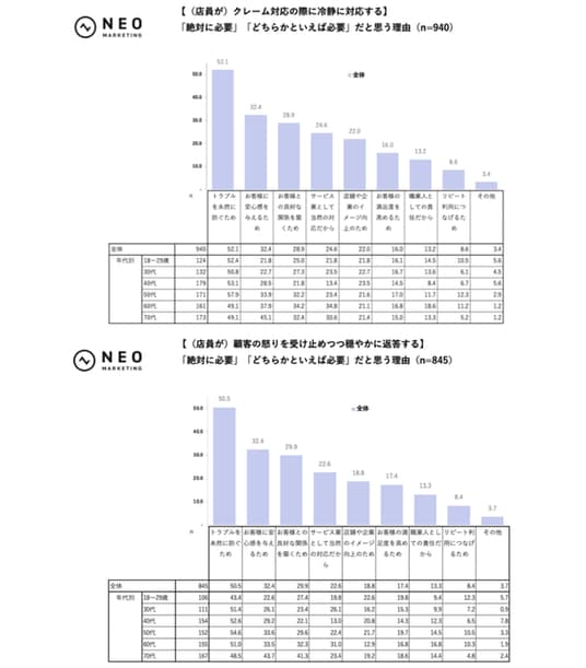 前掲した設問【スーパー・コンビニ・小売店等で接客を受ける際に必要だと思う対応】にてそれぞれの対応を「絶対に必要」「どちらかといえば必要」もしくは「不要だと思う」「どちらかといえば不要」と回答した人に対し、その理由をお聞きしました。