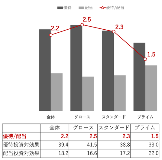 特にグロース・スタンダードといった時価総額500億円未満の企業が多い市場においては、優待の効果がより大きく表れています。