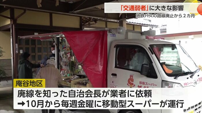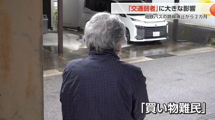 路線バスの廃止によって車を運転できない高齢者は「買い物難民」となった。廃線を知った自治会長が業者に頼み込み、住民が買い物できるよう10月から毎週金曜日に移動型スーパーが運行されるようになったが、路線バスがなくなった不便さは想像以上だという。